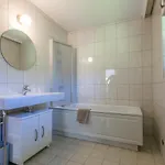 Along with a sofa, guests will benefit from an en suite bathroom with a tub, a separate toilet, and a shower.